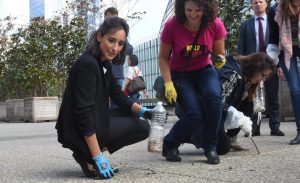 Madame la Secrétaire d’État Brune Poirson – Ramassage de Mégots sur le Parvis de la Défense.